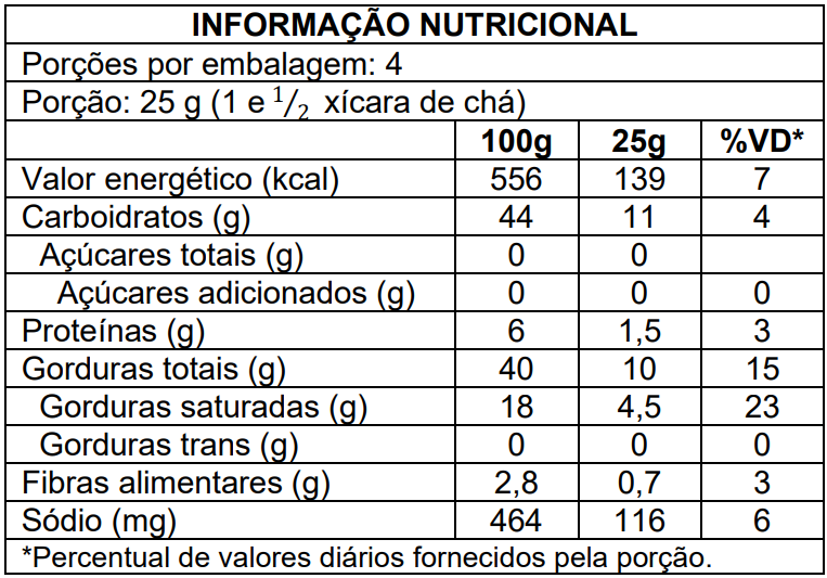 Batata, óleo vegetal, sal refinado e realçador de sabor glutamato monossódico.ALÉRGICOS: PODE CONTER SOJA.
